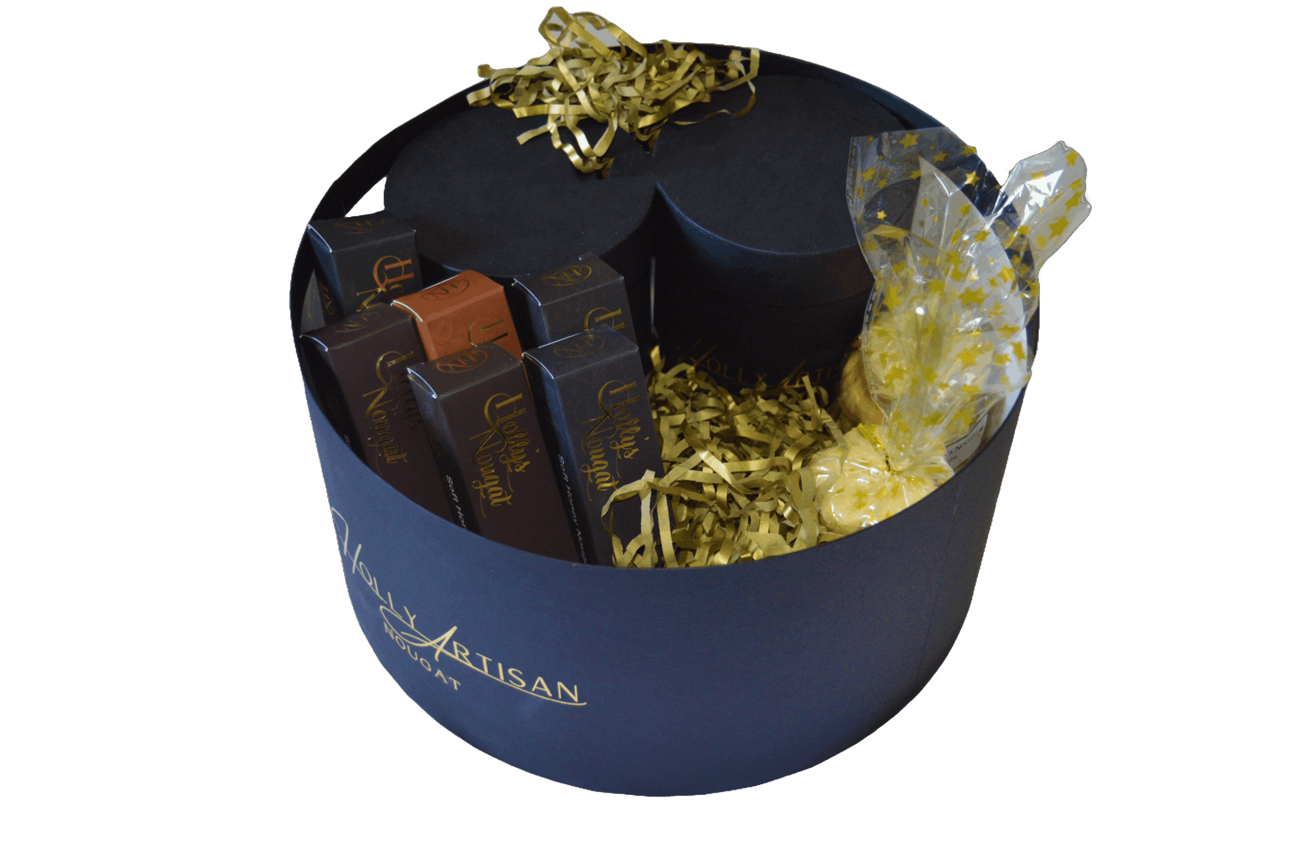 Our beautifully presented Hat Boxes are filled with a delightful selection of our premium nougat treats, offering a mix of irresistible flavors. Whether you choose the Medium or Large size, each box includes a variety of delicious nougat bars and biscuits, expertly crafted for indulgence. Ideal for gifting or treating yourself, the Hat Box is a thoughtful and luxurious way to enjoy a selection of sweet, nutty, and flavorful delights. Select the Medium for a perfect smaller treat, or go for the Large for a more generous assortment to share and savor.